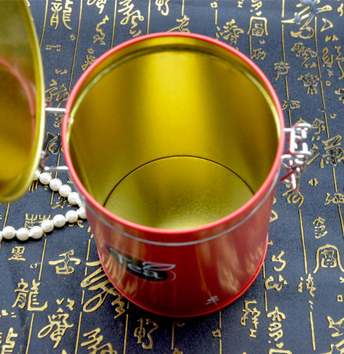 此款鐵盒采用四色印刷,整個(gè)鐵盒以中國(guó)紅作為底色設(shè)計(jì),簡(jiǎn)單的英文Tea作為鐵盒文字裝飾,整體簡(jiǎn)單、大氣,非常適合作為禮品鐵盒送人。鐵盒蓋子采用鎖扣設(shè)計(jì),增加了鐵盒整體設(shè)計(jì)感,而且鎖扣設(shè)計(jì)曾加了密封性,可以充分保護(hù)茶葉免受空氣氧化。