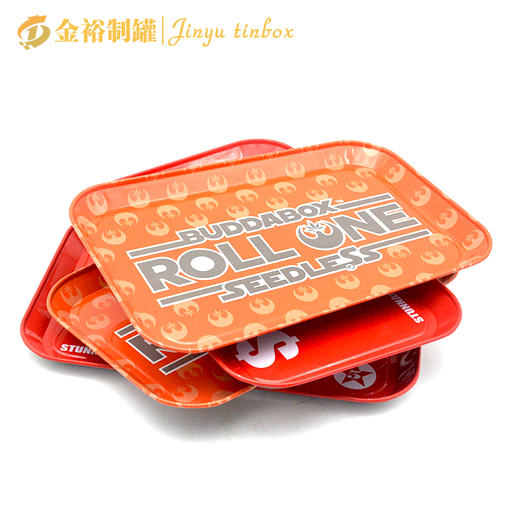 【簡介】這款托盤常用于出口,國外的用戶經常用這樣的馬口鐵托盤卷煙絲,是國外煙民必備工具之一;此款托盤采用的23絲馬口鐵,對托盤的表面可進行各種設計稿印刷。