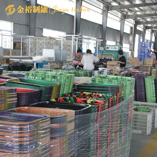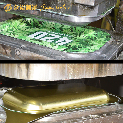 【簡介】此款托盤精選寶鋼一級馬口鐵,鐵皮厚度達到38絲,尺寸也是金裕制罐生產的托盤款式最大的一款,引進了50噸位的大型制罐沖壓機進行生產,一條生產線日產量可達15000件。