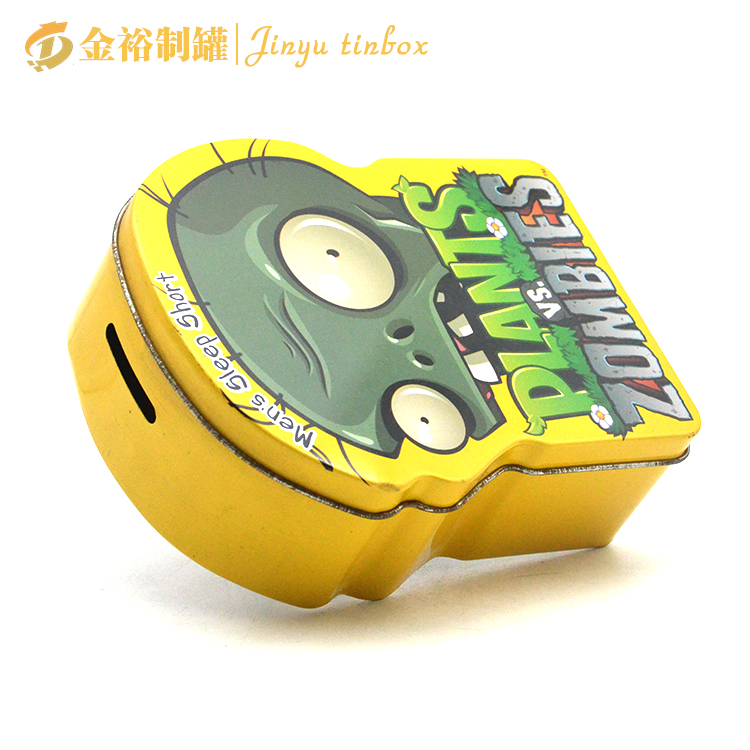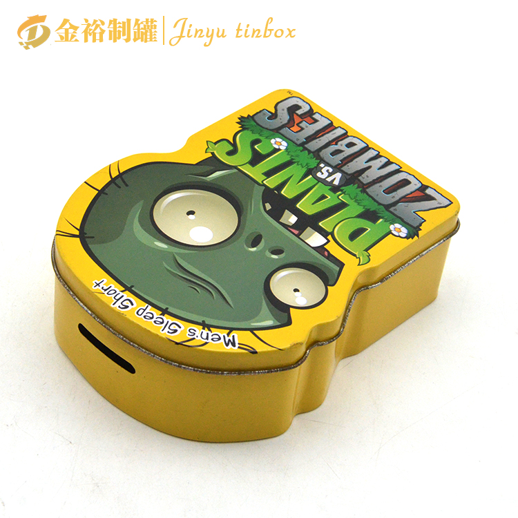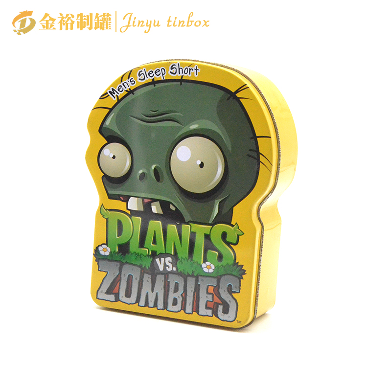 【簡介】此款異形鐵盒, 是用作儲蓄罐的,造型采用植物大戰僵尸中的僵尸造型,可謂是相當獨特有趣,異形鐵盒,打破常規審美觀點,讓你的產品能吸引更多的眼球!