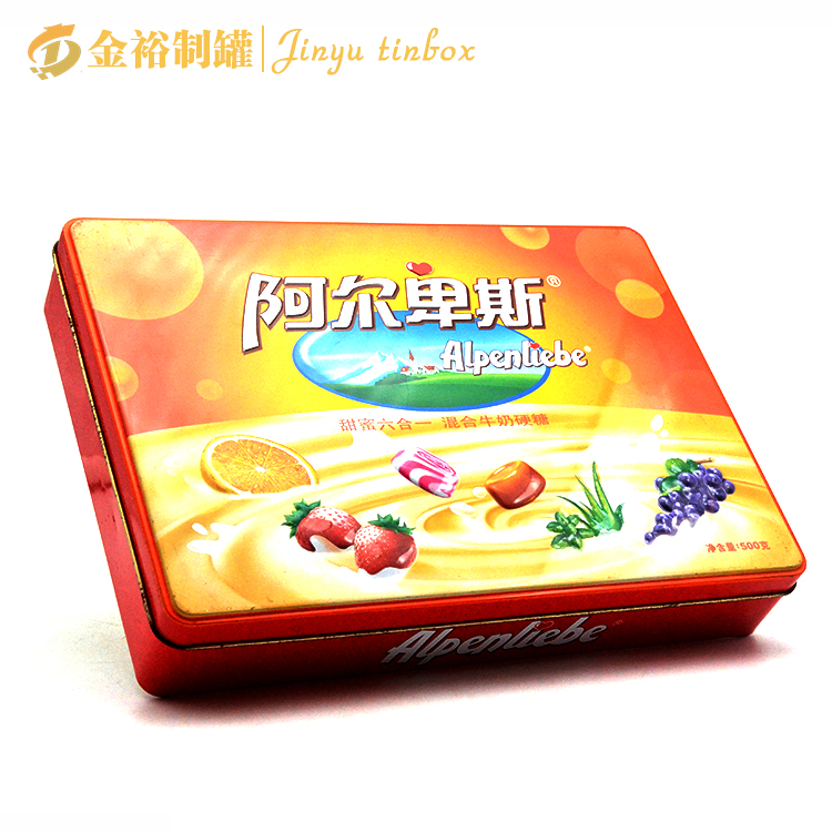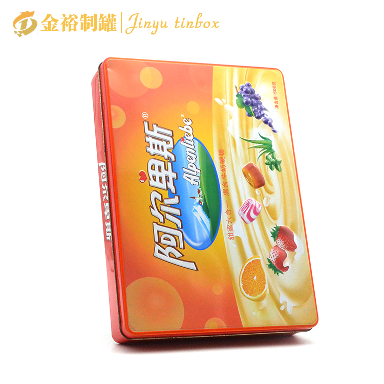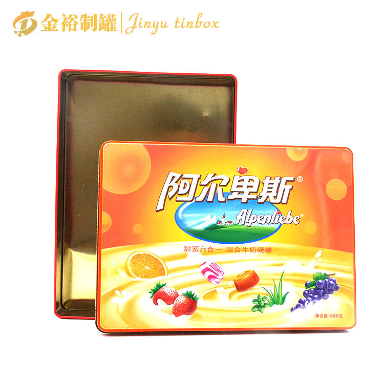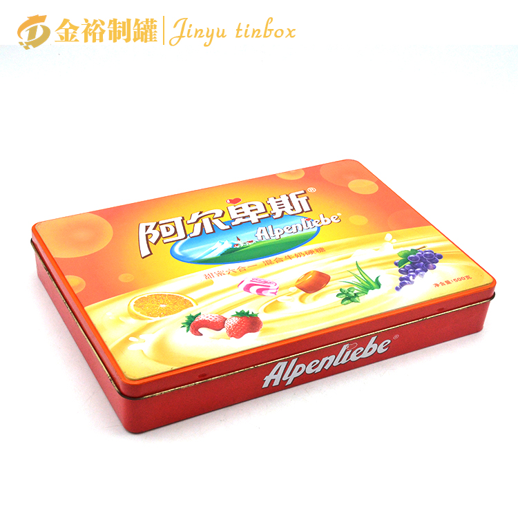 【簡介】此款長方形鐵盒是用來裝阿爾卑斯奶糖的,阿爾卑斯是知名糖果品牌,再搭配鐵盒包裝,可以說是為糖果錦上添花,從而提升糖果的銷量。