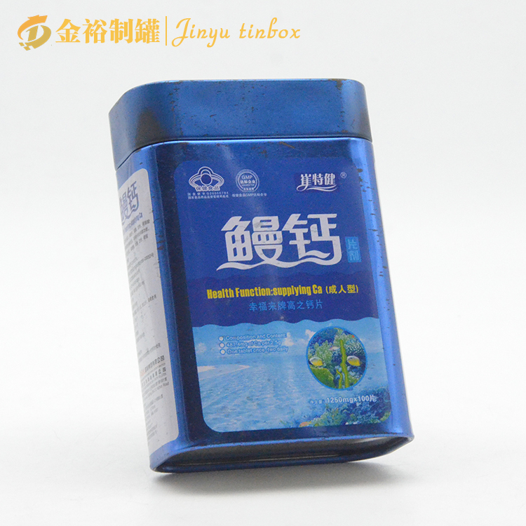 長方形鐵盒,”鰻鈣“保健品鐵盒生產廠家