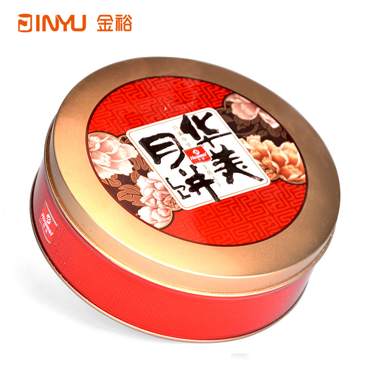 【產品簡介】此款圓形月餅盒,精選寶鋼一級馬口鐵制作而成,23絲厚度,平面鐵類型,表面過金油處理。它是一款中號的圓形月餅盒,我司還擁有多款尺寸的圓形月餅盒可供選擇。圓形,象征團圓,在中秋佳節之日,更是賦予了美好的向往。