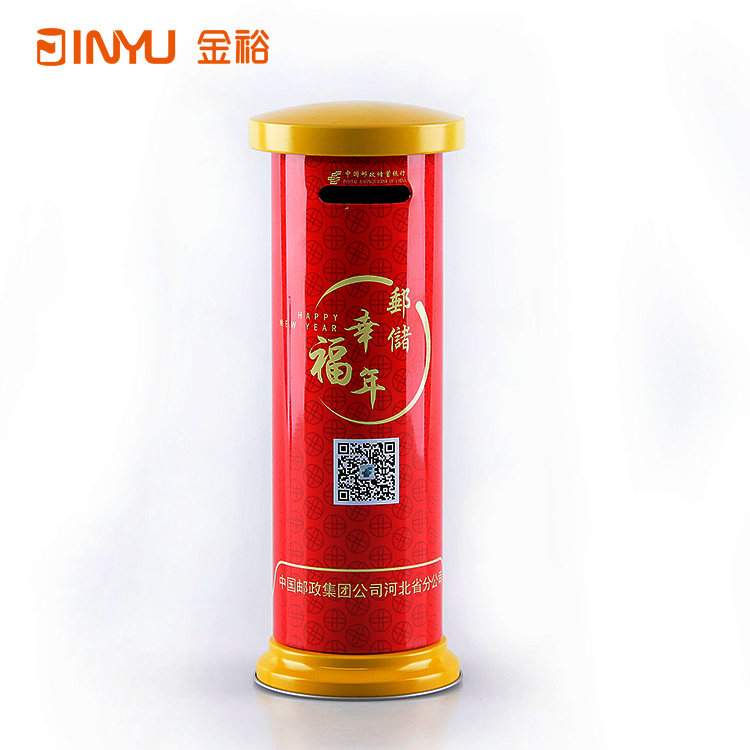 【產品簡介】該款圓形鐵盒為我司2018年初生產的一批存錢罐產品,是中國郵政定做的促銷禮品鐵盒,鐵盒造型仿照經典的“郵箱”造型,可謂是相當接地氣,這樣造型的一款鐵盒用來做儲蓄罐,寓意也很好,充滿創意,既體現了郵政公司,又表達了對財富的美好寄托。