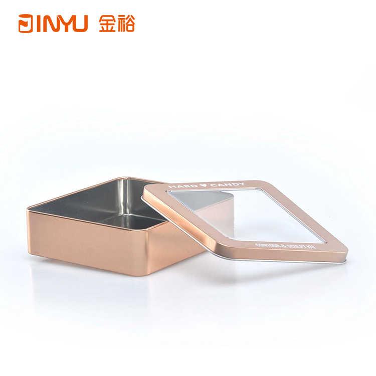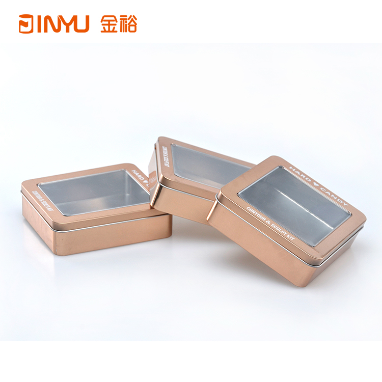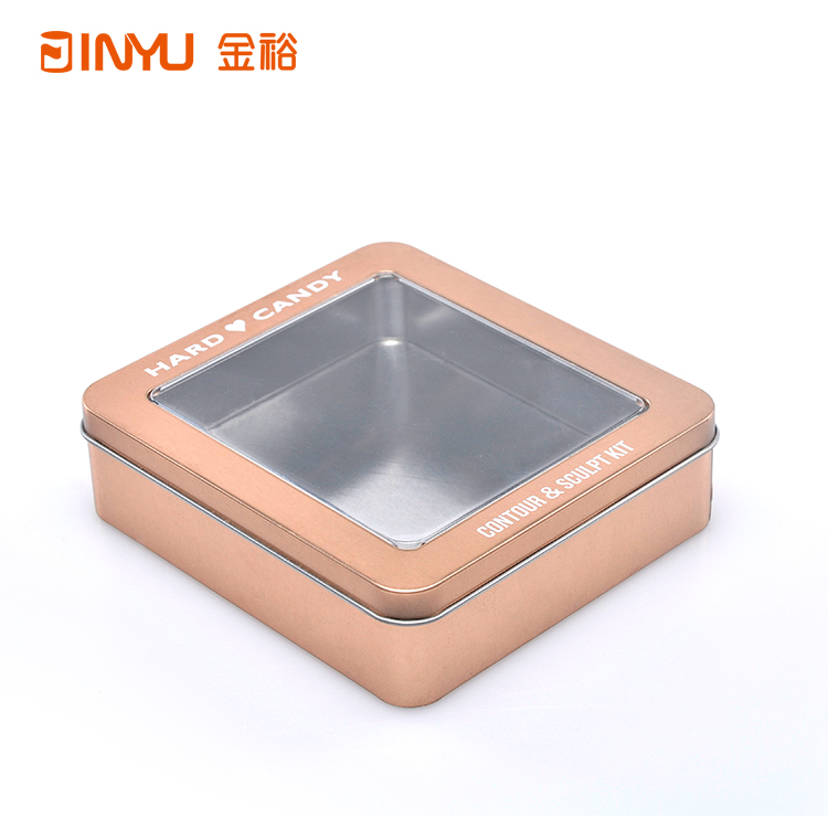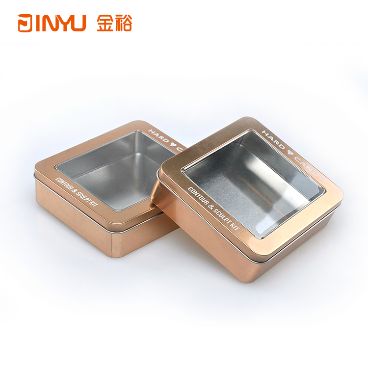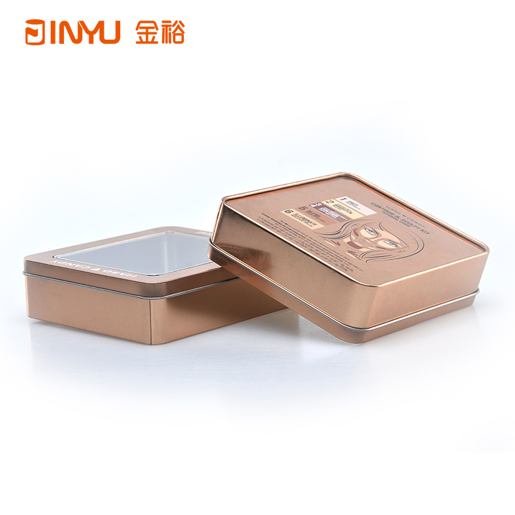 【產品簡介】該款方形開天窗鐵盒,是一款化妝品鐵盒,扣底結構,盒蓋中間部位采用透明PVC材質代替,相當于給鐵盒開了一個“天窗”,開了天窗的鐵盒有一個很大的好處就是可以看見里面的產品,省去了必須打開盒蓋才能看見產品的繁瑣環(huán)節(jié),提升用戶體驗。
