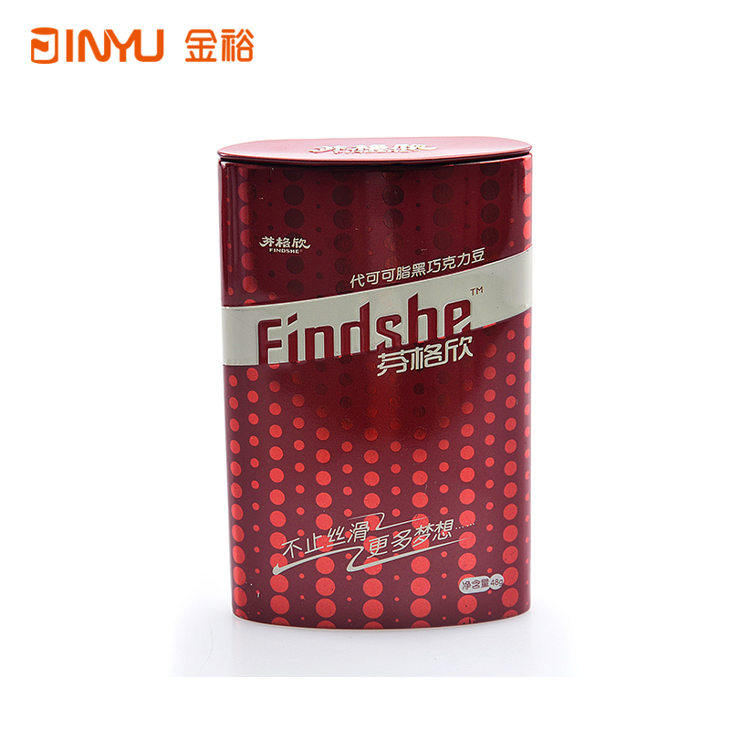 該款巧克力鐵盒采用扁圓形設計,較大程度上提升了手感;