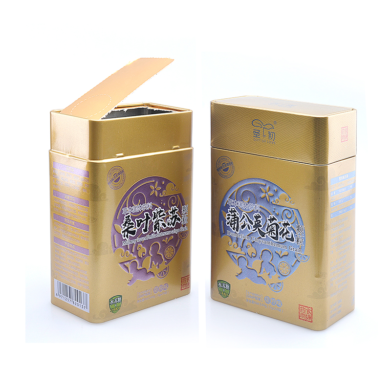 【產品簡介】此系列鐵盒是用來裝各類固體飲料沖劑的,盒子的造型有點仿香煙盒,其采用扣底結構,蓋子采用雙層結構,內部有二次密封易拉紙內蓋,增加鐵盒內產品密封性。