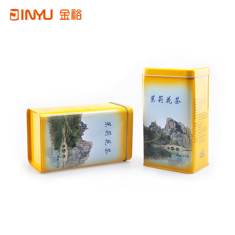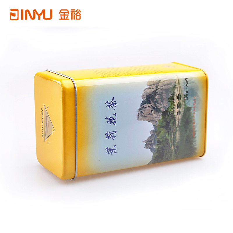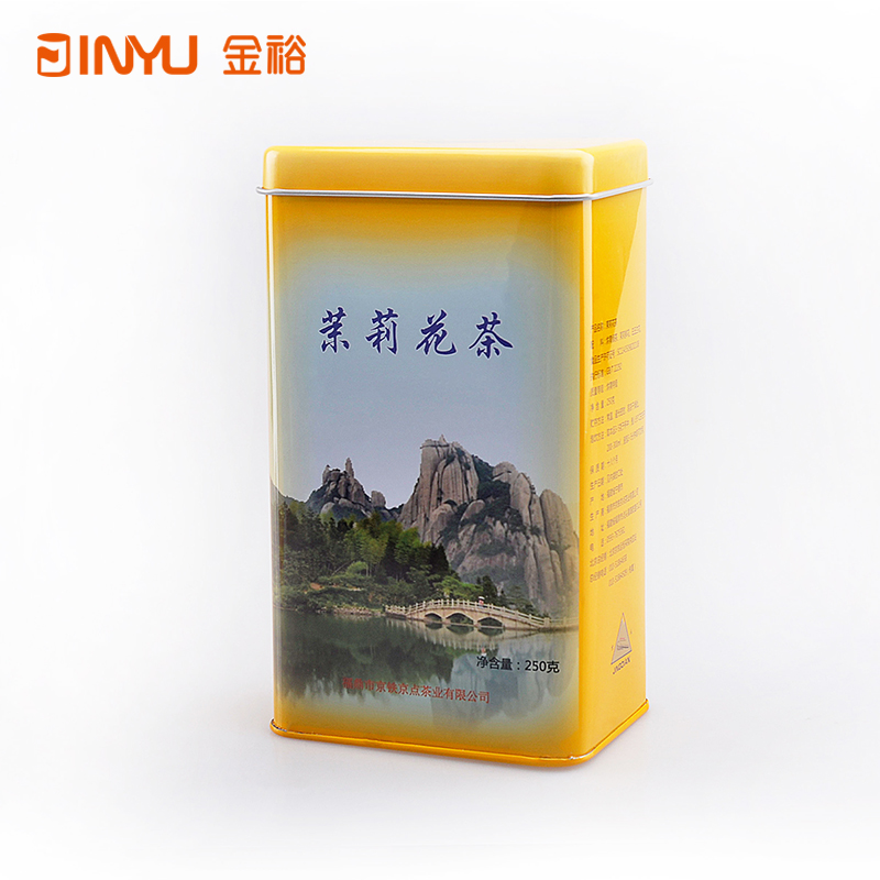 【產品簡介】此款花茶鐵盒是用來裝茉莉花茶的,經典的造型,常見的結構大小,其是福鼎市一家茶葉公司定制的一款花茶包裝鐵盒。