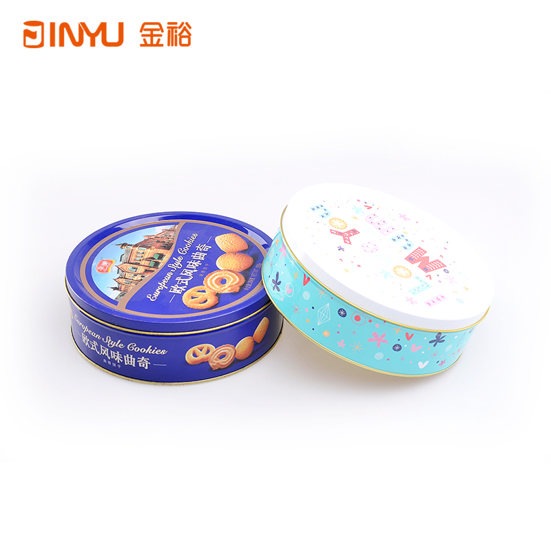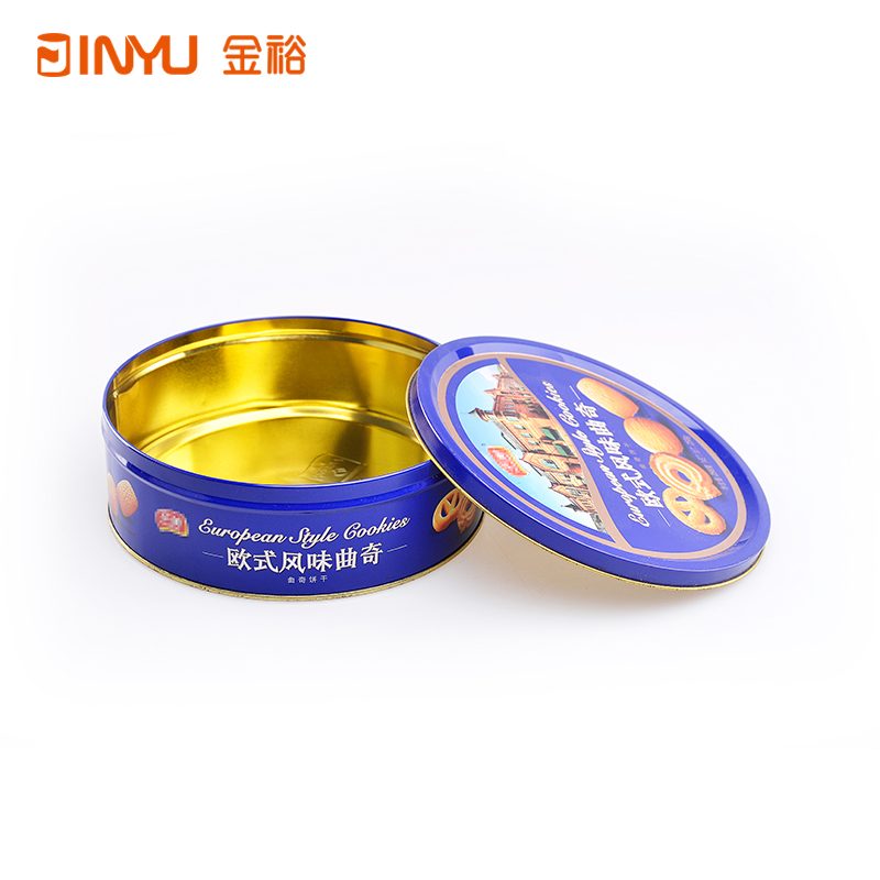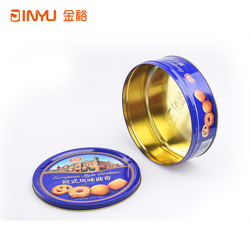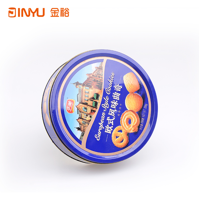 【產品簡介】此款圓形鐵盒是用來裝曲奇餅干的,是華美食品公司定制的眾多鐵盒中的一款,該款鐵盒采用四色印刷工藝,內部過金油處理,整體美觀大方。