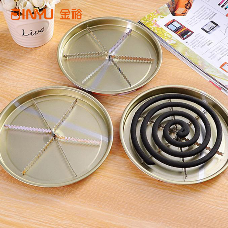 該系列蚊香盤原材料采用寶鋼雙面鍍錫馬口鐵制成,5.6g/㎡錫層,深度防銹