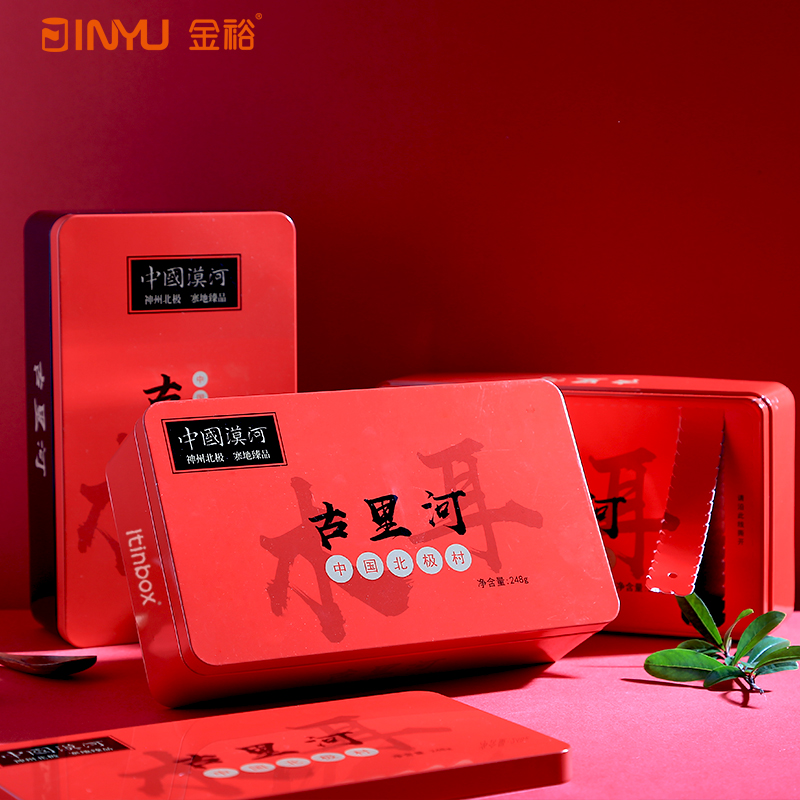 【產品簡介】此款長方形食品包裝鐵盒,是一款經典款式,其是用來裝黑木耳的,采用一次性內撕紙蓋+拍底的結構,方便食品廠商手動或者機械封存產品,同時提升了產品的檔次,促進銷量,這就是這款盒子為什么這么受歡迎的原因之一。