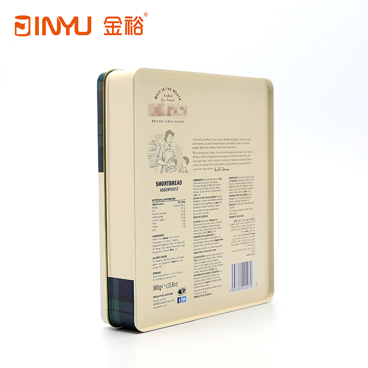 【產品簡介】此款方形鐵盒是一款出口產品,是一款巧克力曲奇餅干鐵盒包裝盒,經典的盒子設計,簡約而不失高貴,是一款送禮佳品,適合超市進口食品專區或者高檔食品專區使用。