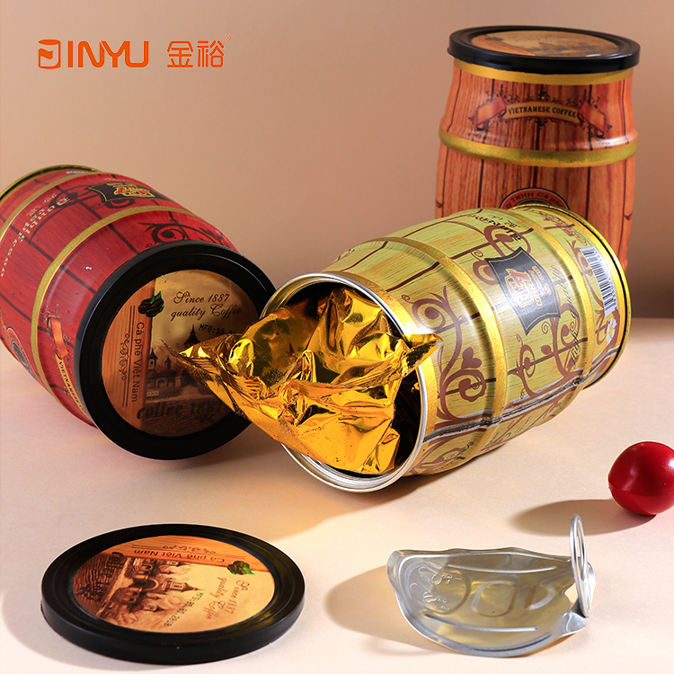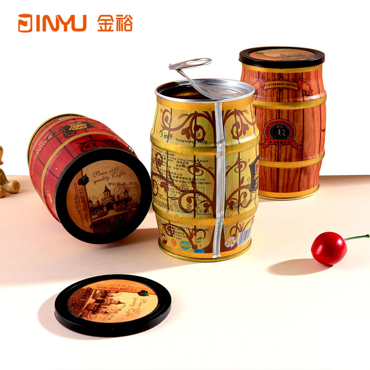 【產品簡介】此款咖啡鐵罐是一款焊接罐,同時采用易拉蓋的形式,因此也屬于馬口鐵雜罐中的一種密封罐,該款咖啡鐵罐造型獨特,印刷精美,較受消費者喜愛。其除了咖啡及咖啡豆之外,還適合各種固體飲料、中成藥、中藥飲片等產品包裝。