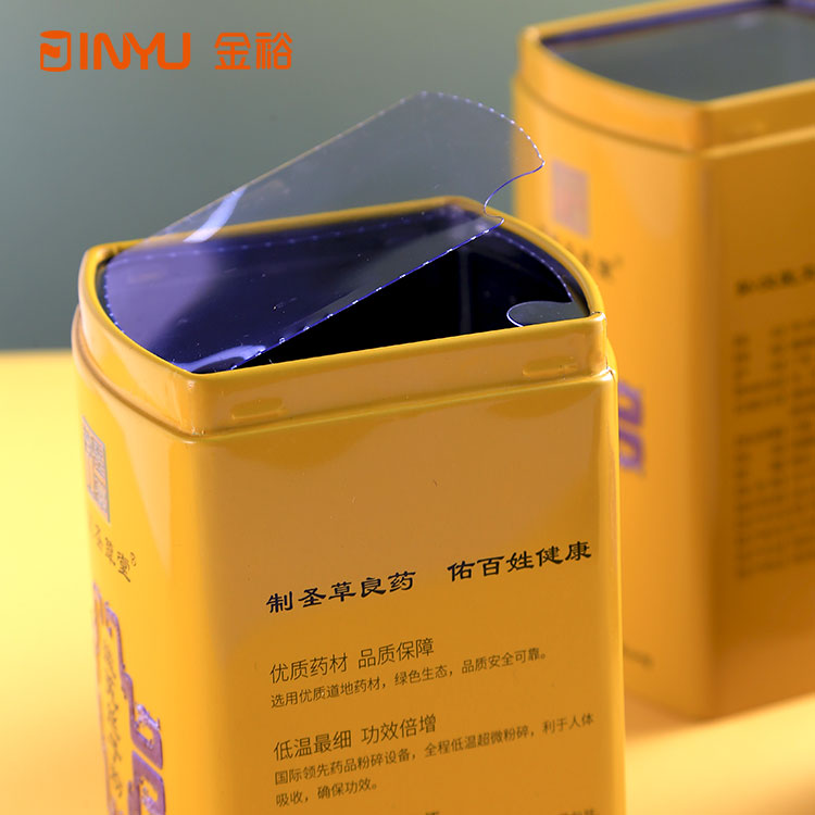 【產品簡介】這款鐵盒是我司專門為保健品設計的鐵盒包裝,底部采用拍底結構,蓋口出為了更好的密封處理,采用特別設計做封口,整個鐵盒看上去精致大氣,提升產品的品牌形象。