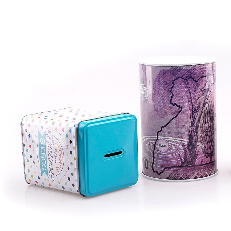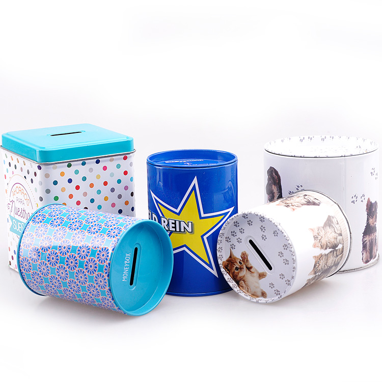 馬口鐵存錢罐的造型可以選擇不同的尺寸,方形圓形的都可以根據需求個性化定制,封底結構,天地蓋設計,印刷可以選擇四色或者專色印刷。