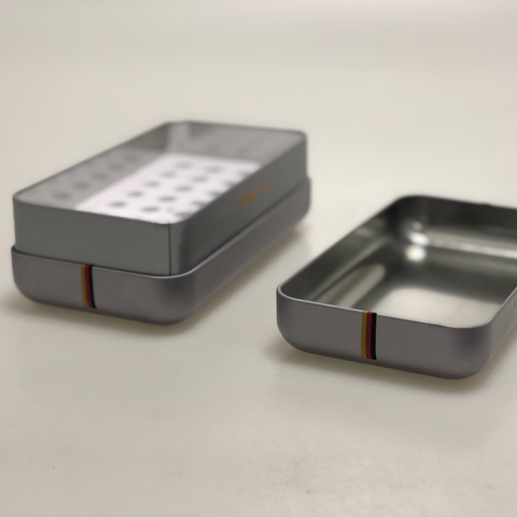 【產品簡介】這款天地蓋鐵盒,底蓋采用相同模具定做而成,很有特色的一款長方形鐵盒包裝,適用于保健品、醫藥試劑等產品包裝,可定制印刷鐵盒圖案文字logo等,需要采購定制鐵盒的可以聯系我們。
