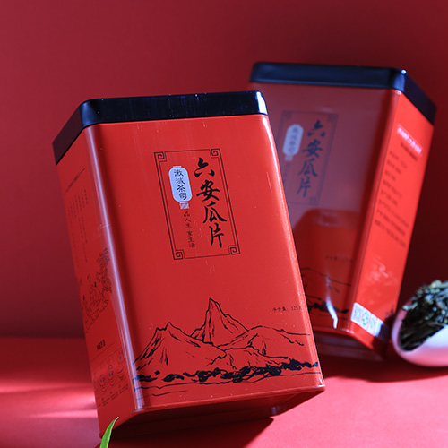 【產品簡介】這款瓜片茶葉鐵盒,采用密封性更好的雙層蓋結構,鐵盒可裝茶葉100克左右,適合定位高檔茶葉鐵盒包裝,定制印刷圖案文字,加上自己的品牌logo,提升宣傳效果。