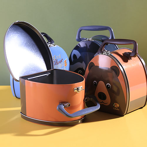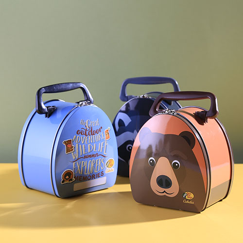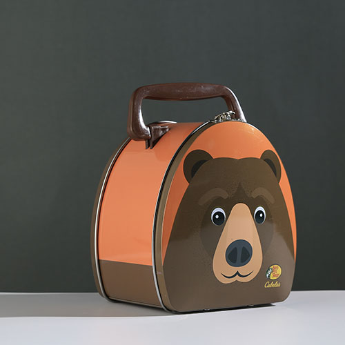 【產品簡介】手提禮品鐵盒,外形像是一個手提包,適合做兒童促銷禮品包裝,漂亮精美的圖案,可以讓客戶過目不忘,需要定制手挽鐵盒的聯系我們。