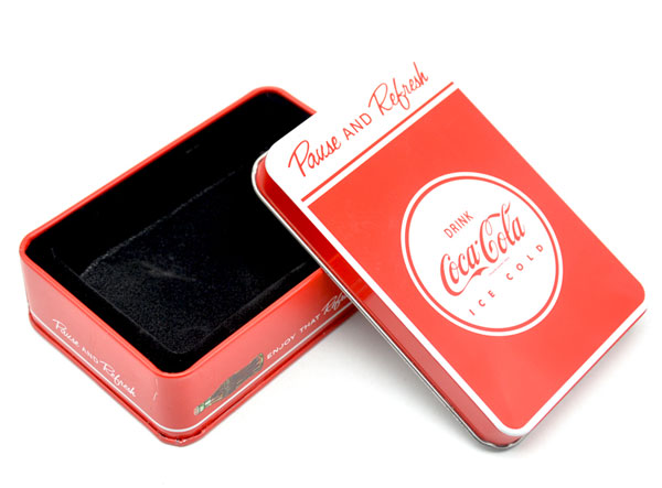 小編今天給大家介紹一款相關的產品——可口可樂鐵盒。此款由金裕制罐承接的可口可樂方形禮品鐵盒,從鐵盒封面的設計稿上就可以直接看出可口可樂的品牌植入。它以“情”作為它的訴求點,以“溝通”作為設計的目的,強調一種誠意、親切以及品質的審美意識。