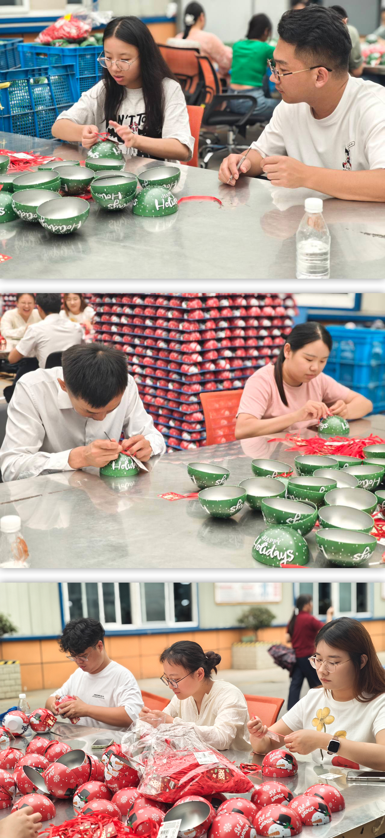 活動(dòng)當(dāng)天,來自黨支部全體黨員、入黨積極分子及職工代表的5支參賽隊(duì)伍(共25人)齊聚賽場(chǎng)。黨員同志沖鋒在前,帶頭分工、率先垂范,每組組長(zhǎng)均由黨員骨干擔(dān)任,他們既當(dāng)“指揮員”又當(dāng)“戰(zhàn)斗員”,高效協(xié)調(diào)組內(nèi)圣誕節(jié)馬口鐵球罐穿繩、打結(jié)、拼裝、清潔等各環(huán)節(jié)。賽場(chǎng)上,黨員們以嫻熟技藝示范操作規(guī)范,以拼搏姿態(tài)鼓舞團(tuán)隊(duì)士氣,帶領(lǐng)群眾齊心協(xié)力攻克操作難點(diǎn),用行動(dòng)詮釋了“一名黨員就是一面旗幟”的深刻內(nèi)涵。從早晨9:00領(lǐng)取工具、材料,到上下午共計(jì)5小時(shí)的緊張比拼,現(xiàn)場(chǎng)洋溢著熱火朝天的勞動(dòng)氛圍。