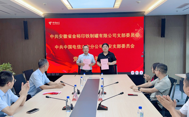 8月27日,安徽省金裕印鐵制罐有限公司黨支部應邀赴中國電信六安分公司,與中國電信六安分公司裕安支部委員會聯合開展黨建共建活動。金裕制罐黨支部書記尹彭彭、副書記徐易陽及黨員代表一行,通過參觀交流、簽約合作,開啟了黨建與數字化深度融合的新征程。